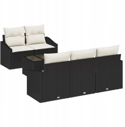 vidaXL Zestaw sof ogrodowych 6-częściowy z poduszkami czarny polirattan