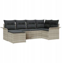 Zestaw sof ogrodowych vidaXL to doskonałe rozwiązanie dla tych, którzy pragną stworzyć elegancką i funkcjonalną przestrzeń na świeżym powietrzu. Składający się z sześciu elementów, w tym wygodnych poduszek, zestaw ten oferuje komfortowe miejsce do relaksu w ogrodzie lub na balkonie. Jasnoszary odcień oraz nowoczesny prostokątny kształt sprawiają, że meble idealnie komponują się z różnorodnymi aranżacjami.