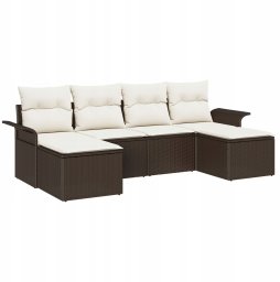 vidaXL 6-częściowy zestaw sof ogrodowych z poduszkami brązowy polirattan, vidaXL 2-osobowa sofa ogrodowa z przechowywaniem i poduszkami brązowy polirattan