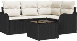vidaXL 4-częściowy Zestaw Sofy Ogrodowej z Poduszkami Brązowy Rattan, 2-osobowa Sofa Ogrodowa z Przechowywaniem i Poduszkami Czarny Rattan