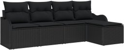 vidaXL 5-elementowy zestaw sof ogrodowych z poduszkami czarny polirattan, vidaXL 2-osobowa sofa ogrodowa z przechowalnią i poduszkami czarny polirattan