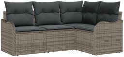 vidaXL Zestaw Sofy Ogrodowej 4 Części z Poduszkami Szary Poli Rattan, 2-osobowa Sofa Ogrodowa z Przechowywaniem i Poduszkami Szary Poli Rattan