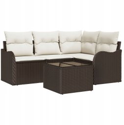 Zestaw 4-częściowych sof ogrodowych od vidaXL to znakomite rozwiązanie dla tych, którzy pragną stworzyć komfortową przestrzeń na świeżym powietrzu. Elegancki brązowy kolor w połączeniu z białymi poduszkami wprowadza nowoczesny styl do każdego ogrodu, balkonu czy patio. Przeznaczony dla 3-4 osób, oferuje idealne miejsce do relaksu oraz spotkań z bliskimi.