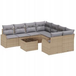 Zestaw sof ogrodowych vidaXL 9-częściowy z poduszkami Beżowy Rattan syntetyczny, Zestaw sof ogrodowych vidaXL 2-osobowy z miejscem do przechowywania i poduszkami Beżowy Rattan syntetyczny