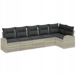 Zestaw Sofy Ogrodowej vidaXL 6-częściowy z poduszkami jasnoszary polirattan, Zestaw Sofy Ogrodowej vidaXL 2-osobowy z przechowalnią i poduszkami jasnoszary polirattan