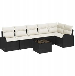 vidaXL Zestaw 6-częściowy sof ogrodowych z poduszkami Brązowy Polirattan, Sofa dwuosobowa z przechowywaniem i poduszkami Czarny Polirattan