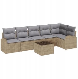 7-częściowy zestaw sof ogrodowych vidaXL z poduszkami czarnym polirattanem, Sofa ogrodowa vidaXL na 2 osoby z miejscem na przechowywanie i poduszkami beżowym polirattanem