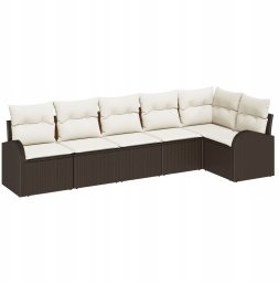 vidaXL Zestaw sof ogrodowych 6 elementów z poduszkami brązowy polirattan, vidaXL Sofa ogrodowa 2-osobowa z przechowalnią i poduszkami brązowy polirattan