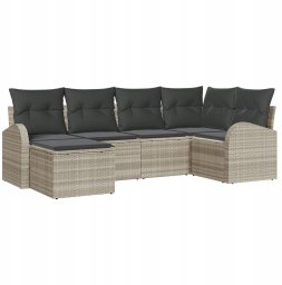 vidaXL 6-częściowy zestaw kanapowy do ogrodu z poduszkami Jasnoszary polirattan, 2-osobowa sofa ogrodowa z miejscem na rzeczy i poduszkami Jasnoszary polirattan
