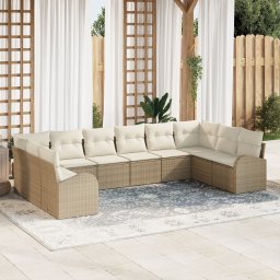 vidaXL Zestaw sof ogrodowych 10-częściowy z poduszkami beżowy polirattan, Dwuosobowy zestaw z schowkiem i poduszkami beżowy polirattan