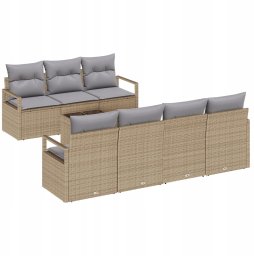 Zestaw kanap ogrodowych vidaXL w 8 częściach z poduszkami Beżowy Polirattan, 2-osobowa kanapa ogrodowa vidaXL z miejscem na przechowywanie i poduszkami Beżowy Polirattan