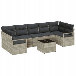 Zestaw sof ogrodowych vidaXL 8-elementowy z poduszkami jasnoszary polirattan, Zestaw sof ogrodowych vidaXL 2-osobowy z miejscem na przechowywanie i poduszkami szary polirattan