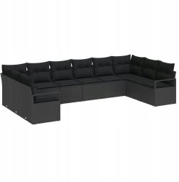 Zestaw ogrodowy vidaXL z 10 elementów i poduszkami czarny polirattan, Dwusobowa sofa ogrodowa vidaXL z miejscem na przechowywanie i poduszkami czarny polirattan
