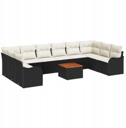 vidaXL 11-częściowy zestaw sof ogrodowych z poduszkami czarny polirattan akacja, 2-osobowa sofa ogrodowa z miejscem do przechowywania & poduszkami czarny polirattan