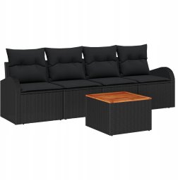 vidaXL Zestaw sof ogrodowych 5 części z poduszkami Czarny Polirattan Akacja, Zestaw sof ogrodowych dla 2 osób z miejscem na przechowywanie i poduszkami Czarny Polirattan