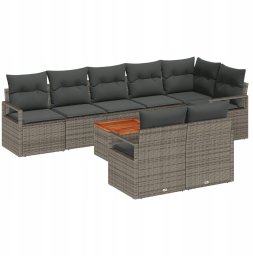 vidaXL Zestaw Sofy Ogrodowej 9 Części z Poduszkami Szary Rattan Poli Rattan Akacja, Sofa Ogrodowa 2-osobowa z Przechowywaniem i Poduszkami Szary Rattan Poli Rattan