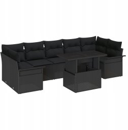 vidaXL 8-częściowy Zestaw Sofy Ogrodowej z Poduszkami Czarny Rattan, vidaXL Sofa Dwuosobowa z Przechowalnią i Poduszkami Czarny Rattan