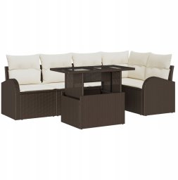 vidaXL Zestaw Sof Ogrodowych 6 Części z Poduszkami Brązowy Poli Rattan, 2-osobowa Sofa Ogrodowa z Przechowywaniem i Poduszkami Brązowy Poli Rattan