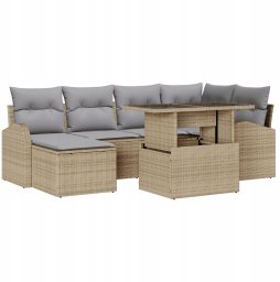vidaXL Zestaw ogrodowy z 7 elementami z poduszkami Beżowy PE Rattan, Dwuosobowa sofa ogrodowa z miejscem na przechowywanie i poduszkami Beżowy PE Rattan