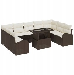 Zestaw kanap ogrodowych 10-częściowy z poduszkami w brązowym polirattanem, Kanapa ogrodowa 2-osobowa z magazynkiem i poduszkami w brązowym polirattanem