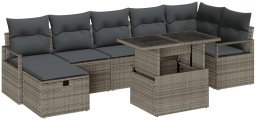 vidaXL 8-częściowy zestaw sof ogrodowych z szarymi poduszkami, 2-osobowa sofa ogrodowa z miejscem na przechowywanie i poduszkami