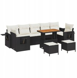 vidaXL Zestaw kanap ogrodowych z poduszkami czarny polirattan akacja, Zestaw do jadalni ogrodowej z poduszkami czarny polirattan akacja