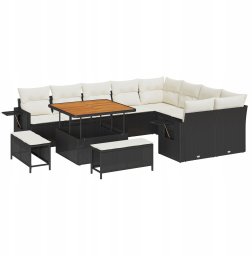 vidaXL 12-elementowy zestaw sof ogrodowych z poduszkami czarny rattan akacja, 3-elementowy zestaw do jadalni z poduszkami czarny rattan akacja