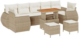 vidaXL Zestaw kanapowy ogrodowy 10 części z poduszkami beżowy poli rattan akacja, Zestaw obiadowy ogrodowy 3 części z poduszkami beżowy poli rattan akacja