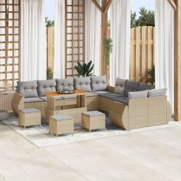 vidaXL 13-częściowy zestaw sofy ogrodowej z poduszkami beżowy poli rattan akacja, 3-częściowy zestaw jadalny ogrodowy z poduszkami beżowy poli rattan akacja
