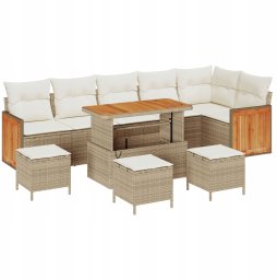 Zestaw sof ogrodowych vidaXL 10 elementów z poduszkami beżowy polirattan akacja, Zestaw sof ogrodowych vidaXL 2-osobowy z poduszkami beżowy polirattan, Zestaw do jadalni ogrodowej vidaXL 4 elementy z poduszkami beżowy polirattan akacja