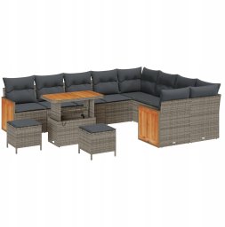 vidaXL Zestaw sofy ogrodowej 12-elementowej z poduszkami szary polirattan akacja, vidaXL Zestaw do jadalni ogrodowej 3-elementowy z poduszkami szary polirattan akacja, vidaXL Sofa ogrodowa 2-osobowa z poduszkami szary polirattan