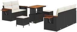 vidaXL 8-Częściowy Zestaw Sofy Ogrodowej z Poduszkami Czarny Polirattan Akacja, 3-Częściowy Zestaw Stołowy Ogrodowy z Poduszkami Czarny Polirattan Akacja