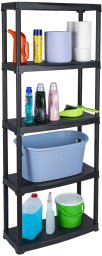 Półka została wykonana z trwałego plastiku, co zapewnia jej długowieczność oraz odporność na uszkodzenia. Każda z pięciu półek może pomieścić do 25 kg, co sprawia, że cała konstrukcja jest w stanie wytrzymać łączne obciążenie do 150 kg. To doskonałe rozwiązanie dla osób potrzebujących solidnego i niezawodnego systemu przechowywania.
