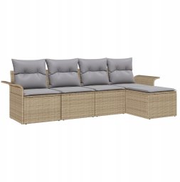 vidaXL Zestaw sof ogrodowych 5-częściowy z poduszkami - Beżowy polirattan