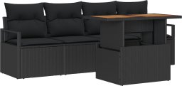 vidaXL 5-Częściowy Zestaw Sofowy do Ogrodu z Poduszkami Czarna Sofa z Polirattanu Akacja