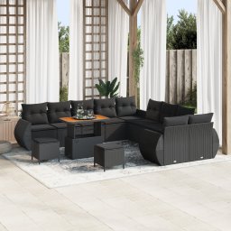Zestaw Sof Ogrodowych vidaXL w 13 Elementach z Poduszkami Czarny Polirattan Akacja