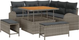 Zestaw 8-el. sof ogrodowych z poduszkami Szary Polirattan Akacja