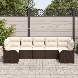 Zestaw sof ogrodowych 7-częściowy z poduszkami Brązowy Polirattan