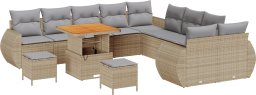 Zestaw sofy ogrodowej 13-elementowy z poduszkami Beżowy Polirattan Akacja