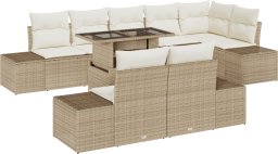 vidaXL Zestaw mebli ogrodowych 9-elementowy z poduszkami Beżowy Polirattan