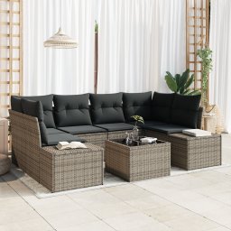 vidaXL Zestaw Sofy Ogrodowej 7 Elementów z Poduszkami Szary Polirattan