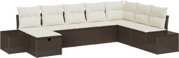 vidaXL 8-częściowy Zestaw Sof z Poduszkami Brązowy Polirattan