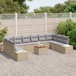 vidaXL Zestaw sof ogrodowych 11-elementowy z poduszkami Beżowy Polirattan Akacja