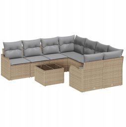 vidaXL 9-częściowy zestaw sof ogrodowych z poduszkami beżowy polirattan