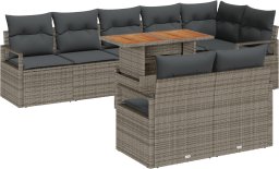 vidaXL 9-częściowy zestaw sof ogrodowych z poduszkami Szary Polirattan Akacja