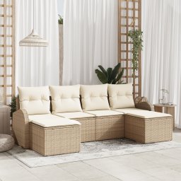 Zestaw 6-częściowy kanap ogrodowych vidaXL z poduszkami Beżowy Polirattan