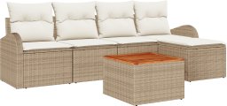vidaXL Zestaw 6-częściowy sof ogrodowych z poduszkami Beżowy Polirattan Akacja
