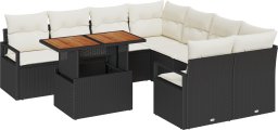 vidaXL 9-częściowy Zestaw sofy ogrodowej z poduszkami Czarny Polirattan