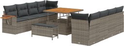 11-częściowy zestaw sofy ogrodowej z poduszkami Szary Polirattan Akacja