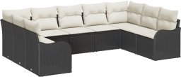 vidaXL 9-częściowy Zestaw Sof Ogrodowych z Poduszkami Czarny Polirattan
